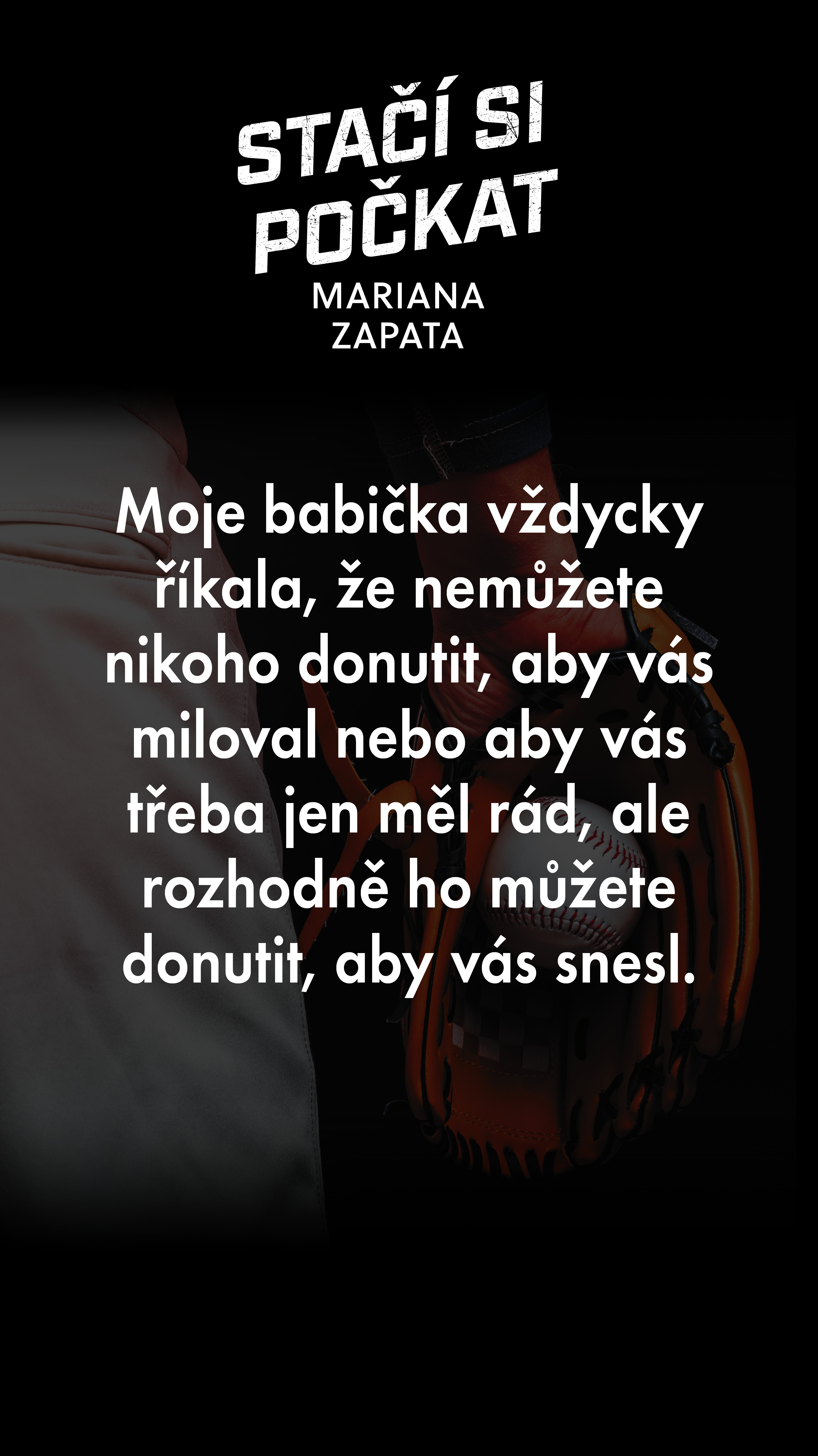 Jestli někdy někdo řekl, že dospělost je brnkačka, tak toho asi ještě moc nezažil. Diana Casillasová se nebojí přiznat, že je někdy úplně ztracená – vždyť se ze dne na den stala opatrovnicí svých dvou synovců. Po dvou letech se ale zdá, že jsou věci na dobré cestě: Diana má nový domov, skvělou rodinu, přátele, obrovského psa a boží práci. Chybí jí snad jen přítel nebo manžel. Svému přitažlivému, ale mrzoutskému sousedovi se snaží vyhýbat. To teď ale půjde těžko, když trénuje baseballový tým jejího synovce…