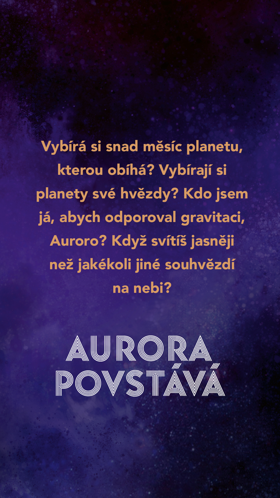 Vybírá si snad měsíc planetu, kterou obíhá? Vybírají si planety své hvězdy? Kdo jsem já, abych odporoval gravitaci, Auroro? Když svítíš jasněji než jakékoli jiné souhvězdí na nebi?