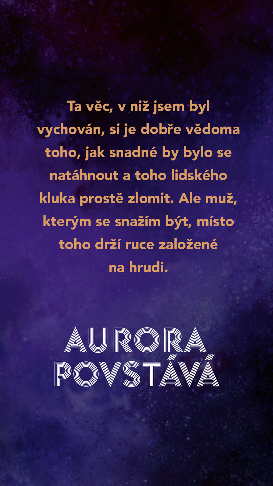 Gravitace působí na všechno, Auroro. Nejen na planety. Nejen mezi hvězdami. Každá buňka v našich tělech, každá buňka na světě působí gravitační silou na objekty a osoby kolem sebe. A… to je to, co cítím. K tobě.