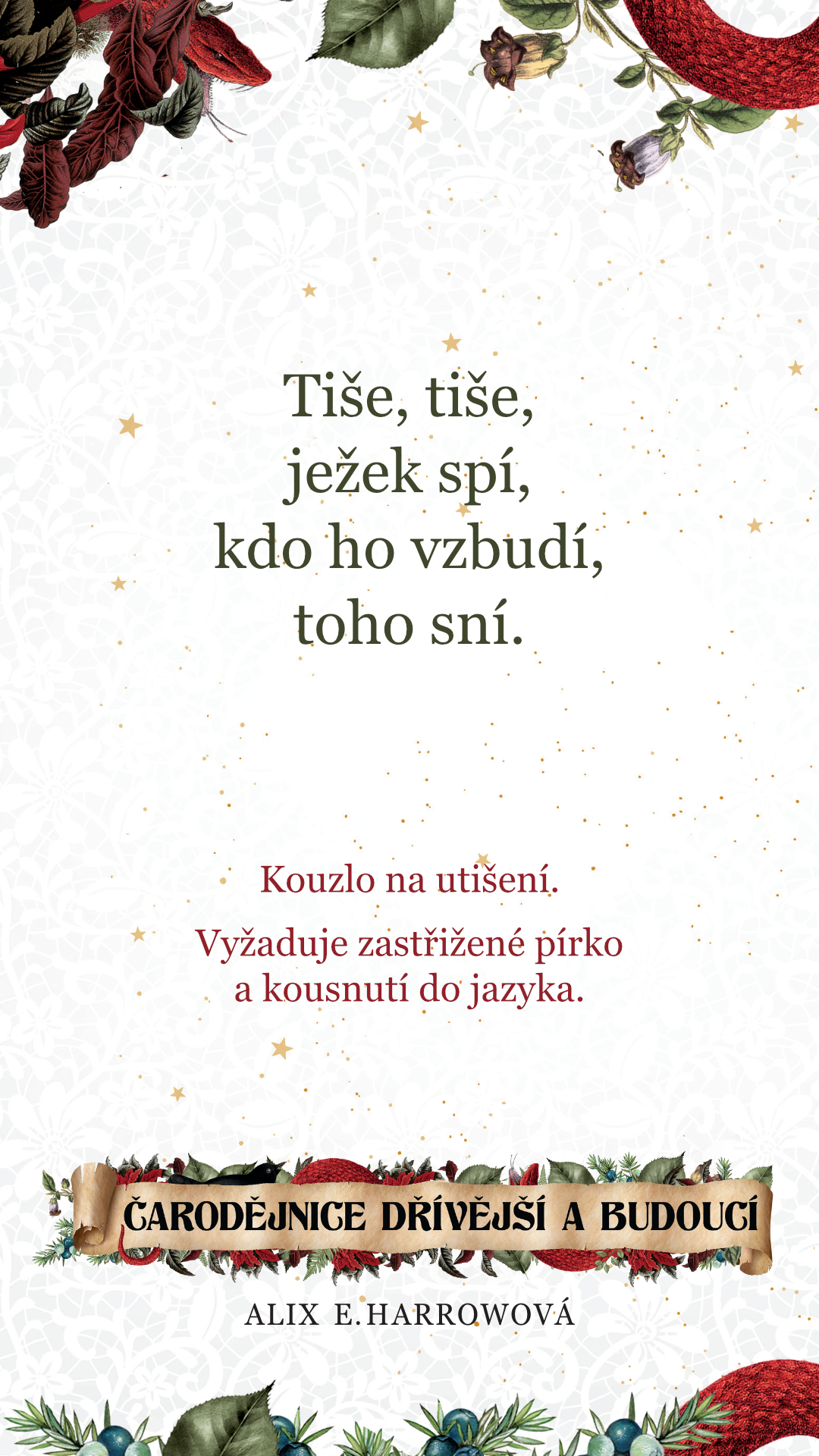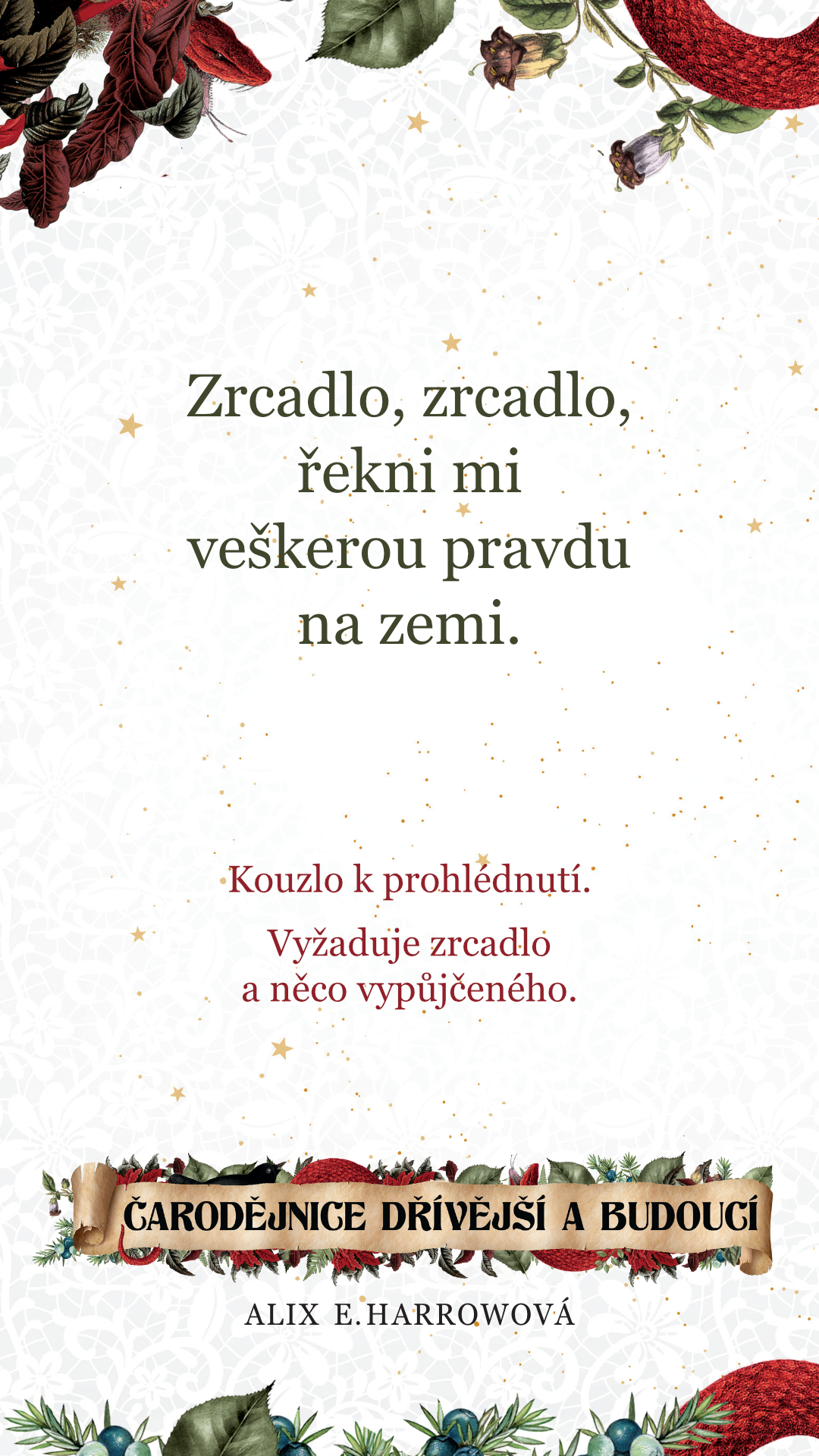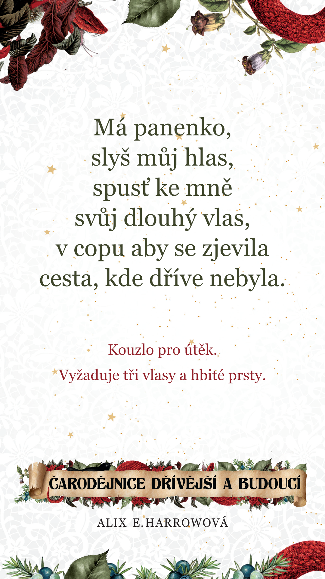 Zaklínadla si můžete stáhnout i graficky a použít třeba jako tapetu do mobilu, nebo vytisknout jako záložku do knížky.