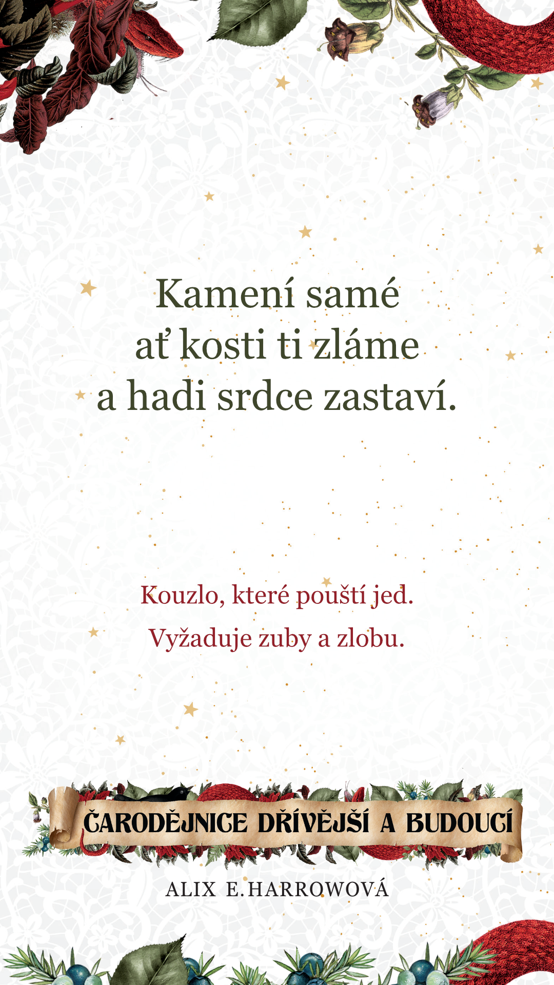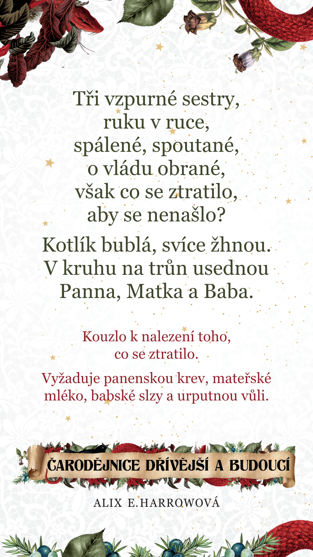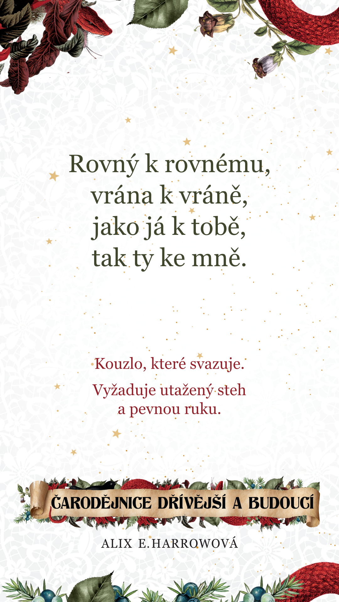 Zaklínadla si můžete stáhnout i graficky a použít třeba jako tapetu do mobilu, nebo vytisknout jako záložku do knížky.