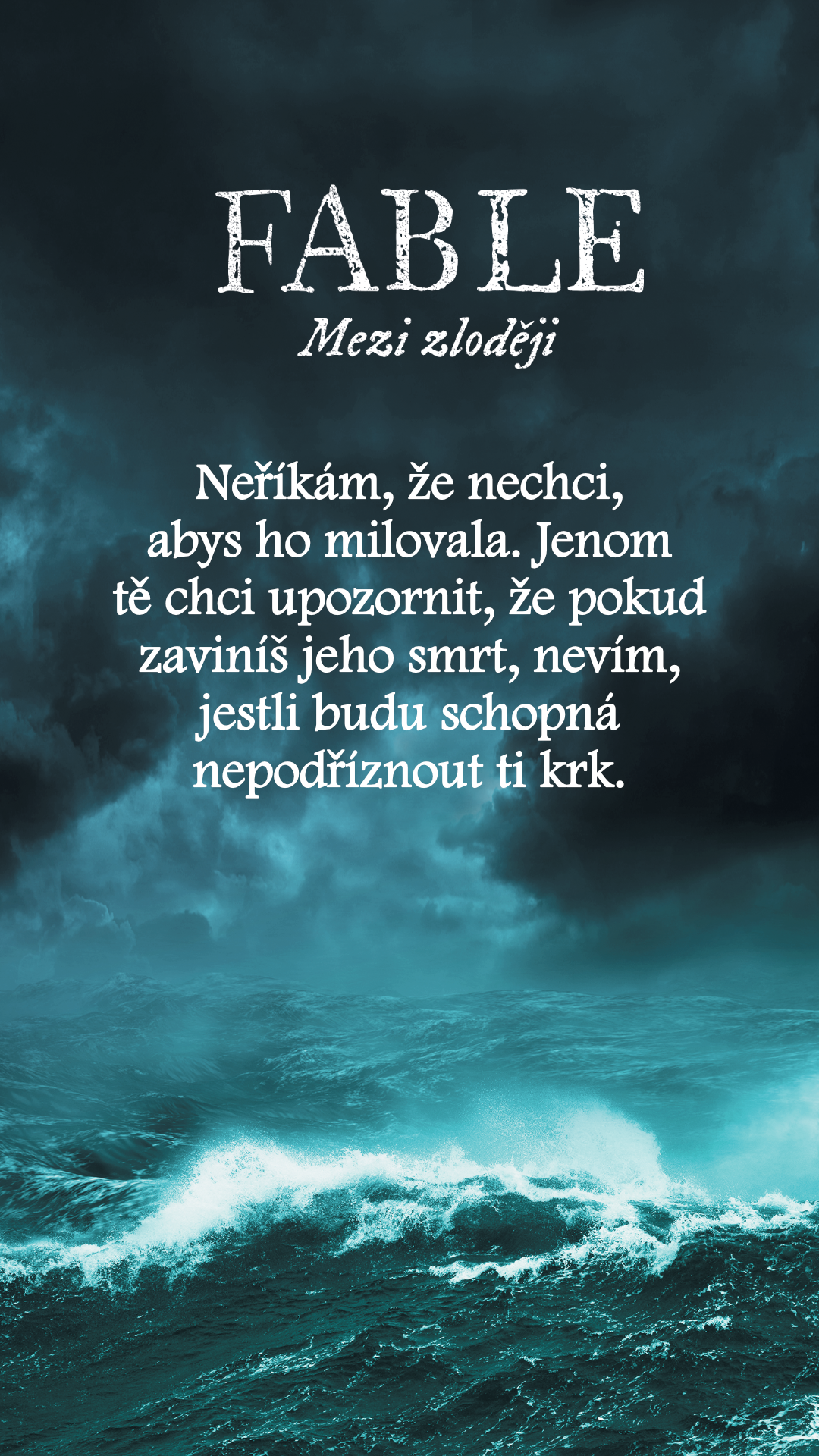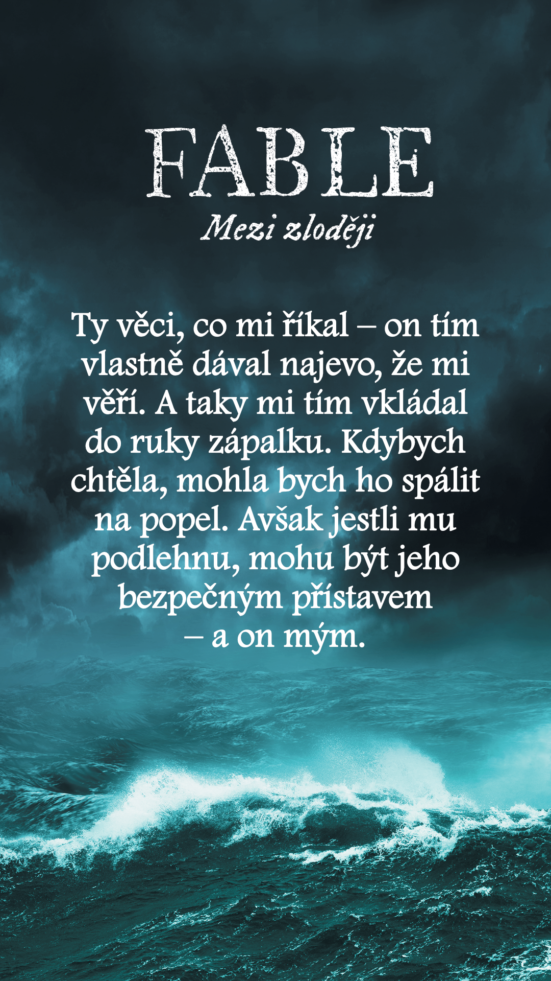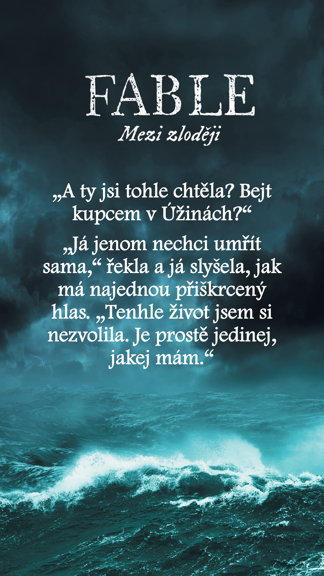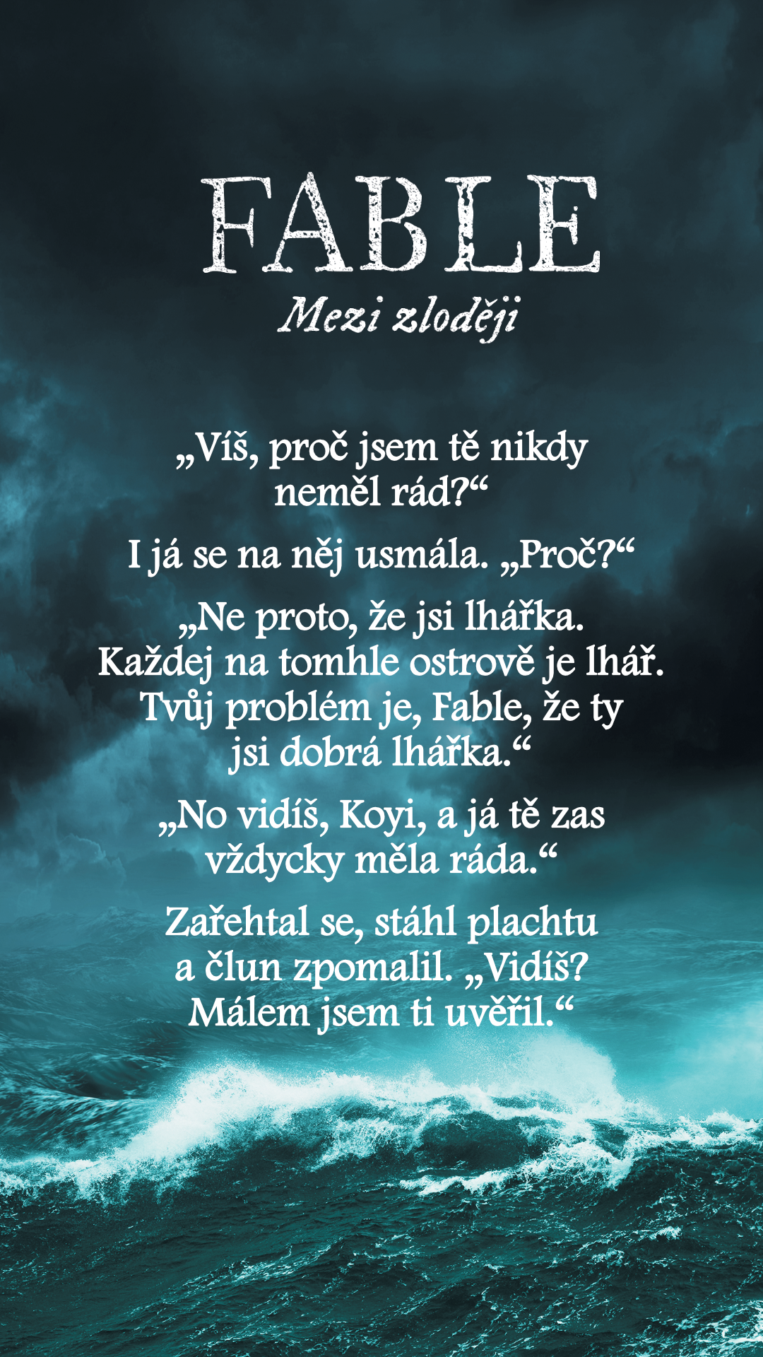 „Ne proto, že jsi lhářka. Každej na tomhle ostrově je lhář. Tvůj problém je, Fable, že ty jsi dobrá lhářka.“