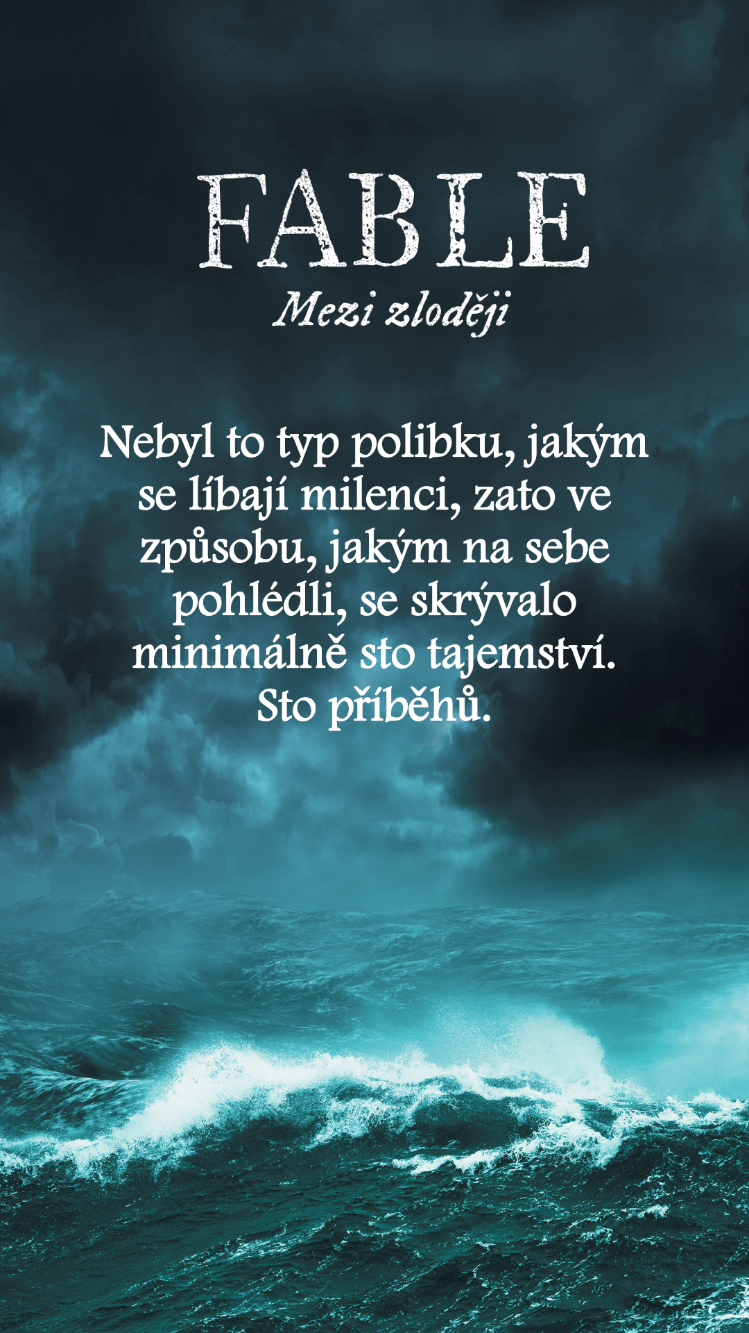 Nebyl to typ polibku, jakým se líbají milenci, zato ve způsobu, jakým na sebe pohlédli, se skrývalo minimálně sto tajemství. Sto příběhů.