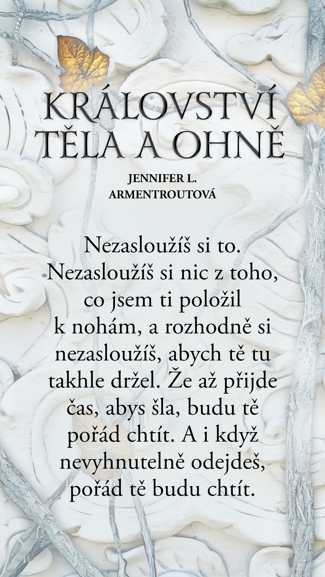 Nezasloužíš si to. Nezasloužíš si nic z toho, co jsem ti položil k nohám, a rozhodně si nezasloužíš, abych tě tu takhle držel. Že až přijde čas, abys šla, budu tě pořád chtít. A i když nevyhnutelně odejdeš, pořád tě budu chtít.