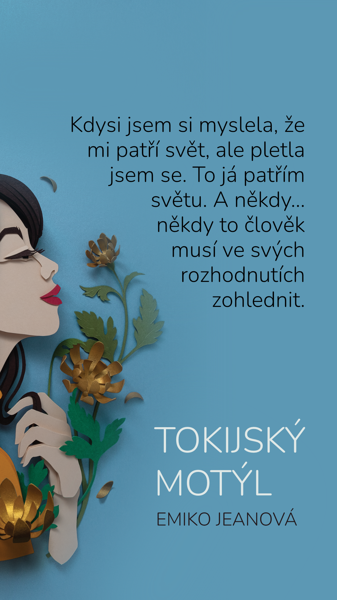 Kdysi jsem si myslela, že mi patří svět, ale pletla jsem se. To já patřím světu. A někdy… někdy to člověk musí ve svých rozhodnutích zohlednit.