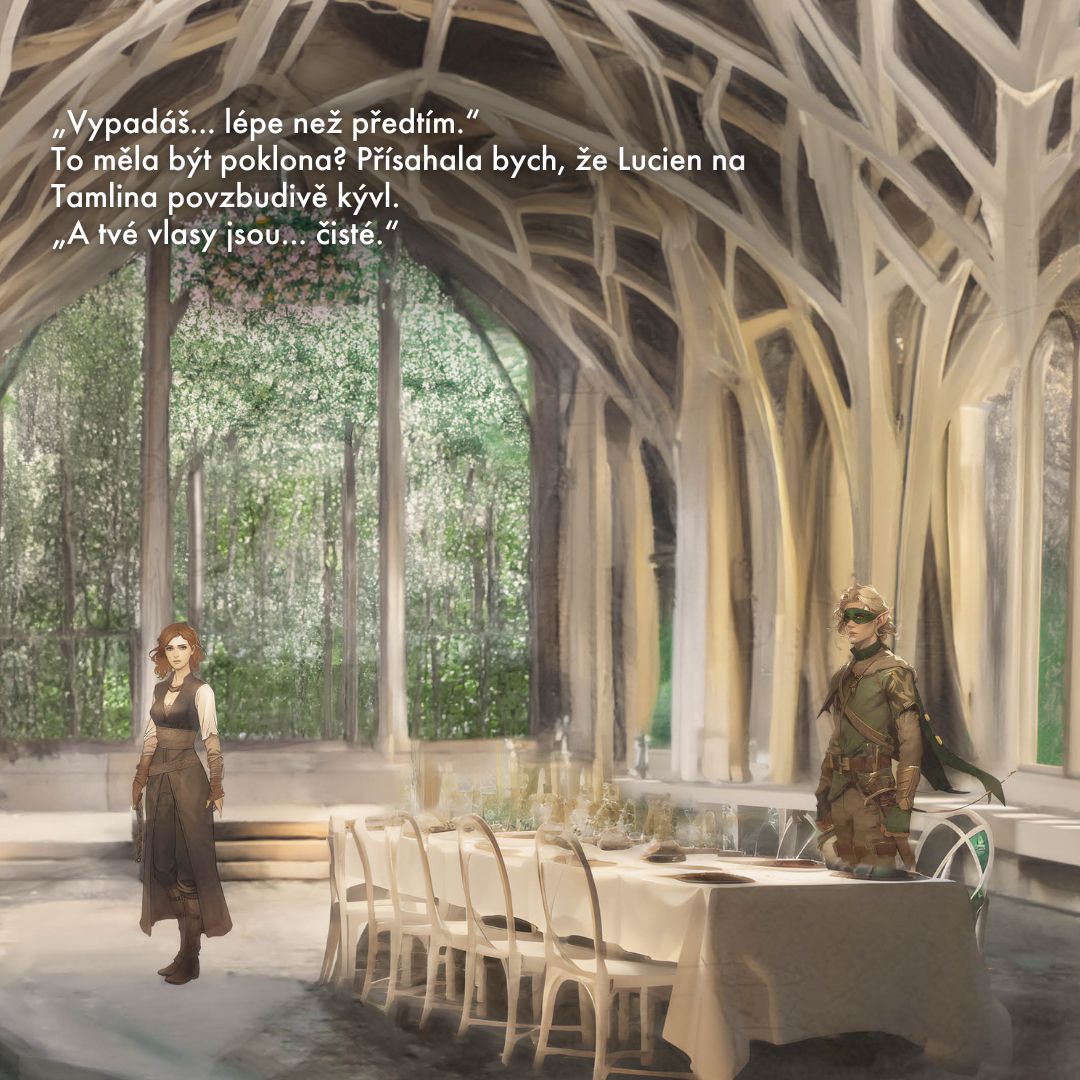 Ilustrace scén z Dvoru trnů a růží